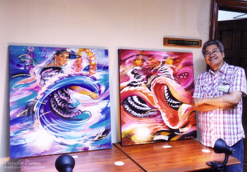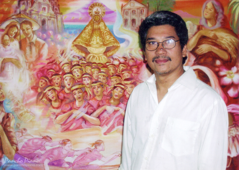 Pancho`s paintings and stained glass designs focus on Bicolano myths and traditions, most especially the Bicolano devotion to the Lady Peñafrancia. He has mounted more than thirty solo exhibitions and participated in over 50 grouped exhibitions, in the Philippines, Japan, Saipan, and the United States of America, France, Austria, the Federal Republic of Germany, Belgium, Italy, and Switzerland.